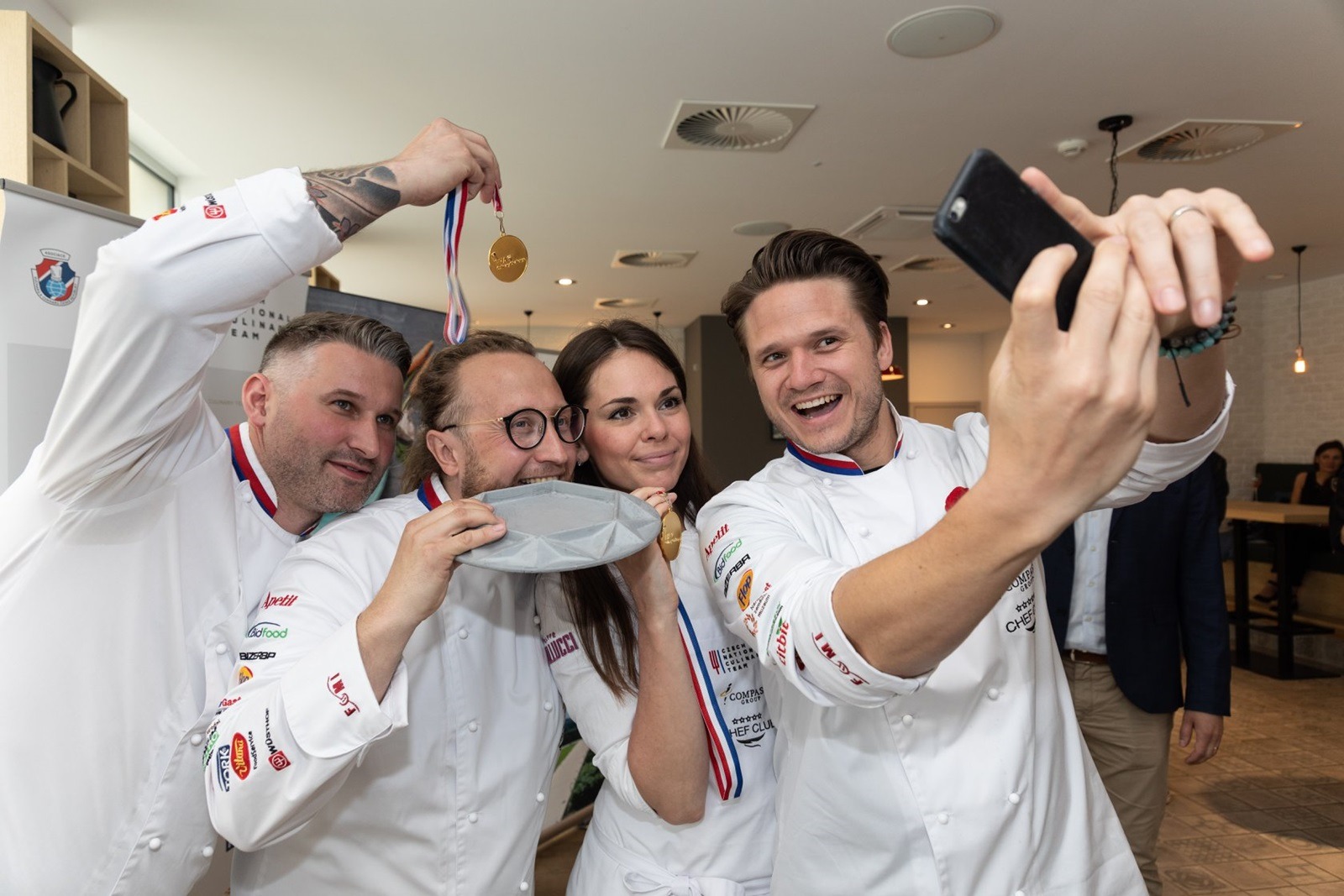 Určitě si říkáte, jaké bylo to vítězné menu, které týmu zajistilo to nejvyšší ocenění. V posledním kole se na betonových talířích objevil losos a mušle, hovězí líčka s roštěnou a jako dezert kokosové pyré a jahody. Český tým dopředu nevěděl, jaké zadání dostane od poroty a jaké dobroty bude muset připravit. Nejenom organizátorům soutěže ale i nám připadá tohle vítězné menu skvělé a jsme moc rádi, že jsme se na tomto úspěchu mohli podílet.