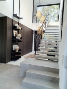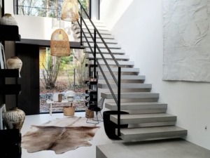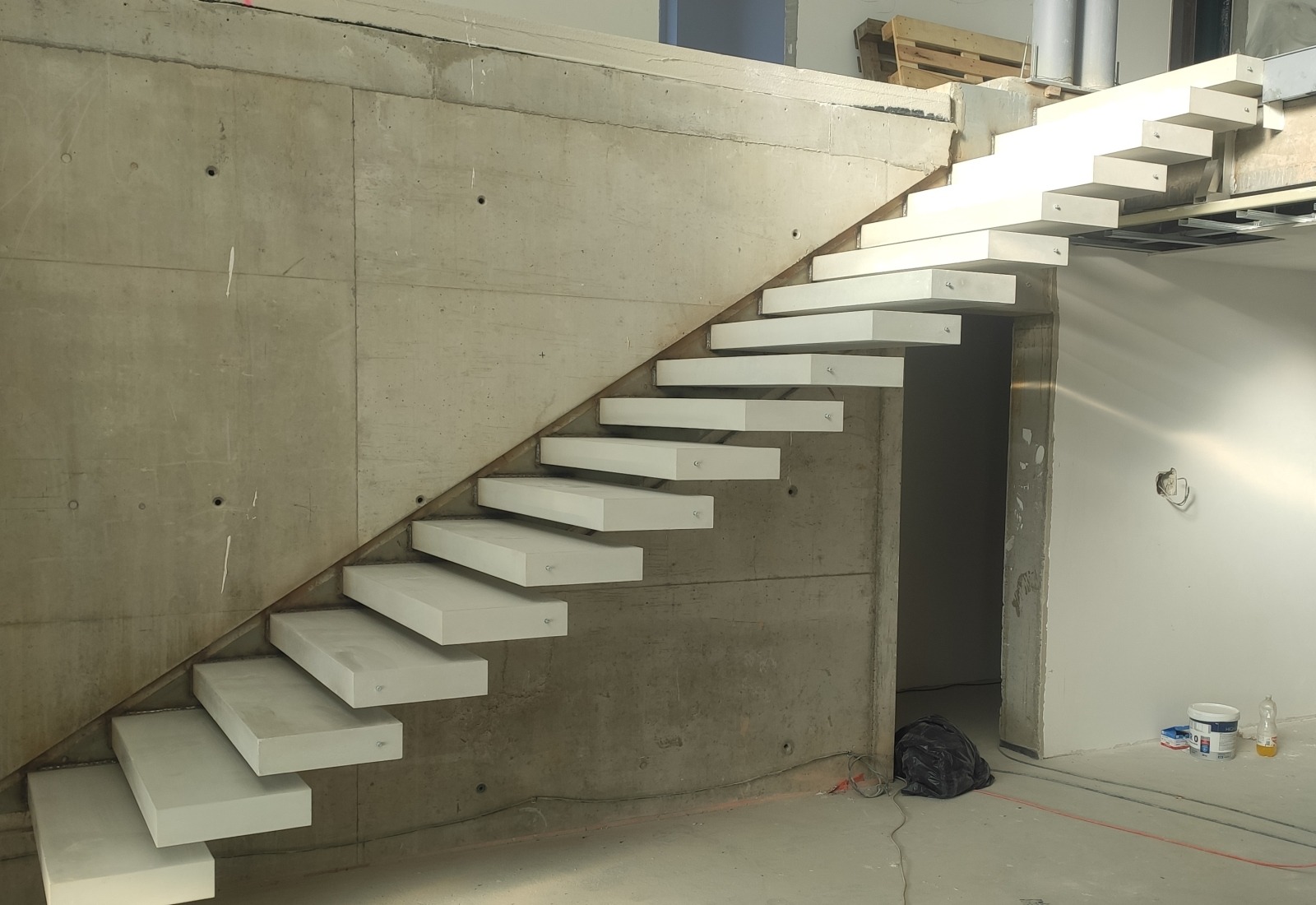 Konzolová schodiště, často označovaná jako “létající” schodiště, jsou charakteristická tím, že mají schody, které se zdají být zavěšené ve vzduchu bez viditelné podpory. To vytváří iluzi lehkosti a přitom je schodiště pevné a stabilní. Naše nová konzolová schodiště z betonu se vyznačuje tím, že zvyšuje tento dojem o něco více.
