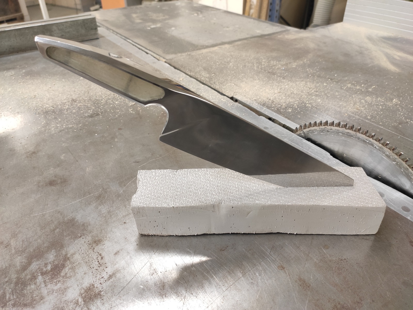 Tibor Mužík si přál kolekci nožů pro NAÏF a Anton Vadovič dal jeho myšlence konkrétní podobu. V této fázi jsme se do projektu přidali my. V návrhu se počítalo s betonovým prvkem vloženým dovnitř ocelové konstrukce nože, a tak jsme museli vyřešit jeho vhodné uložení i výrobu. Rozhodli jsme se pro vnitřní uložení, které zajišťuje lepší fixaci betonového tělesa v noži a snižuje náchylnost k poškození. Náš beton obstál na výbornou, takže jsme se s Antonem pustili do výroby.