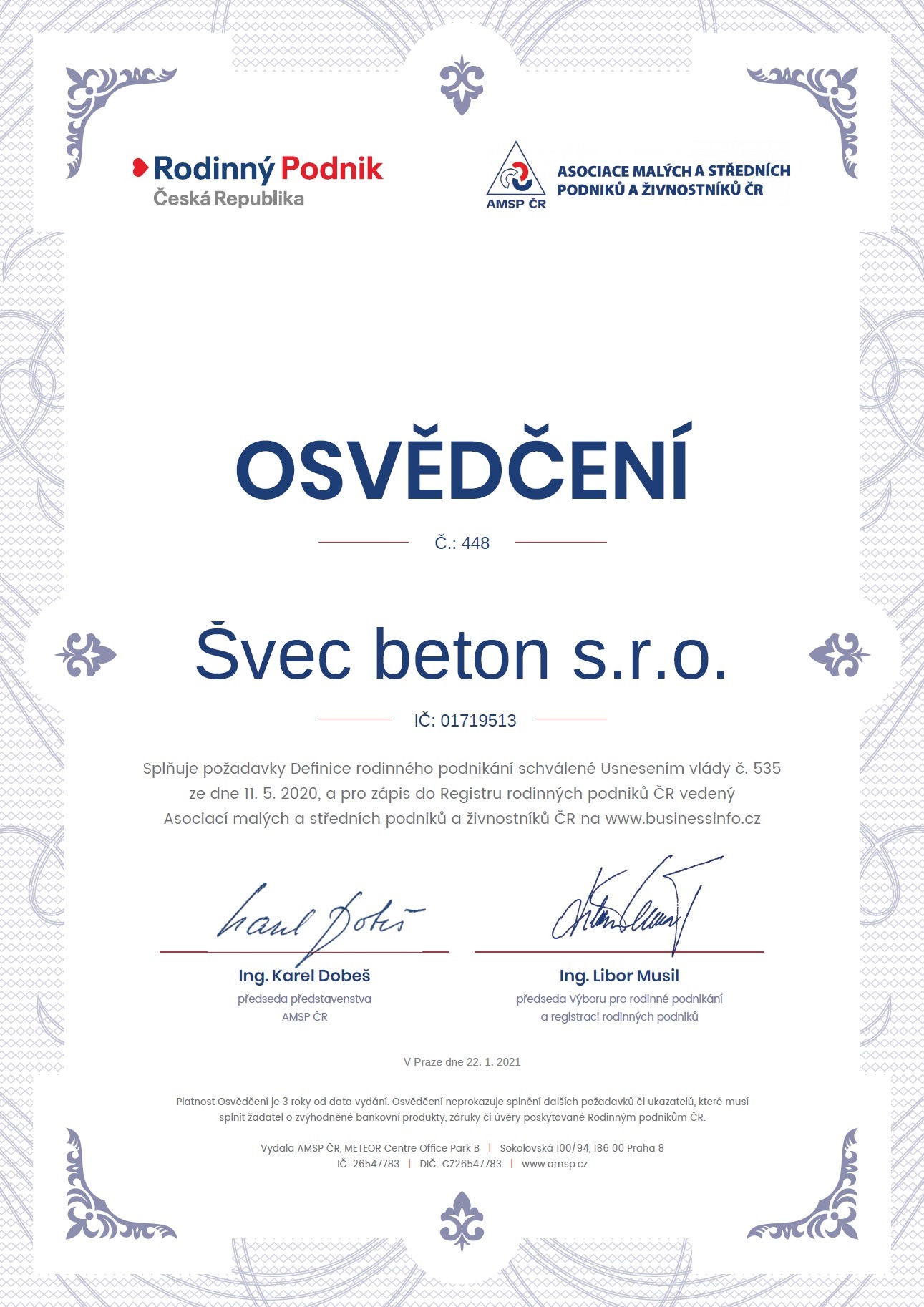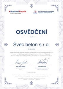 Švec beton jsme spolu s mým tátou založili před 8 lety jako rodinnou firmu a letos jsme využili možnost získat osvědčení, které tento status potvrzuje. Podobných rodinných podniků je kolem vás možná více, než tušíte. Nově o nich díky certifikaci Rodinný podnik, kterou uděluje Asociace malých a středních podniků a živnostníků ČR, bude mít veřejnost lepší přehled.