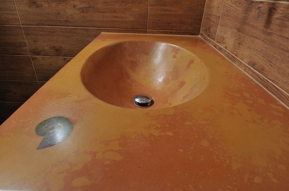 So you say concrete doesn’t belong into a bathroom? We’ll convince you of the opposite. A modern concrete sink and countertop will become a dominant element of the entire interior. Thanks to a special treatment, our products are water-resistant and non-absorbent. Therefore, you don’t have to fear the formation of wet stains or even mould. We will happily design and custom-make a DecorLit sink for you according to your ideas. You will therefore be sure that you own a true original. We can also cast and polish seashells or stones into the surface upon request. It is a beautiful detail that is sure to catch the eye of every visitor.