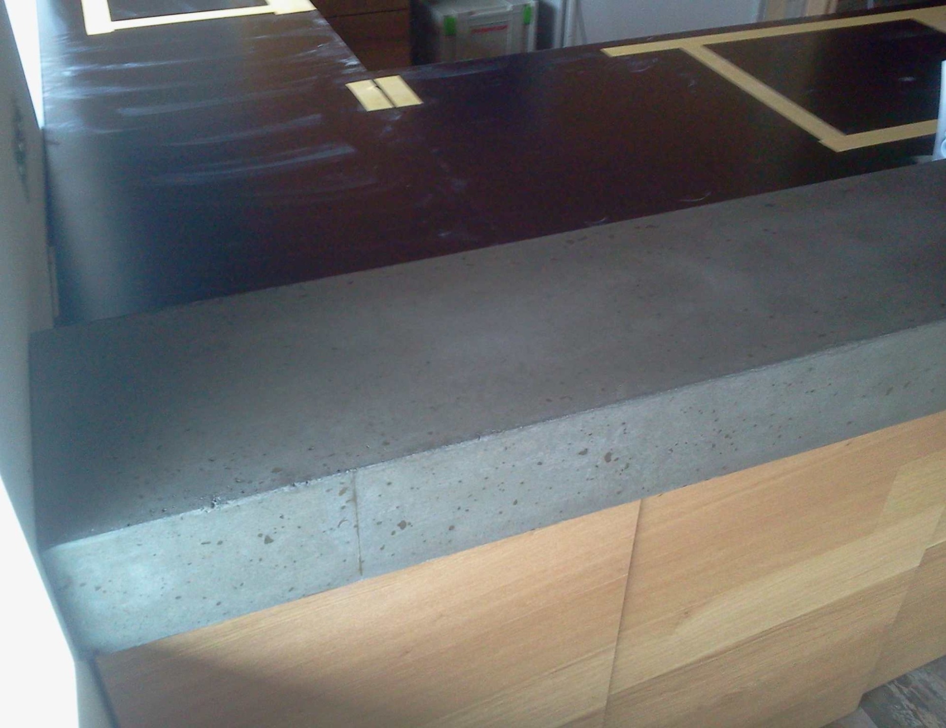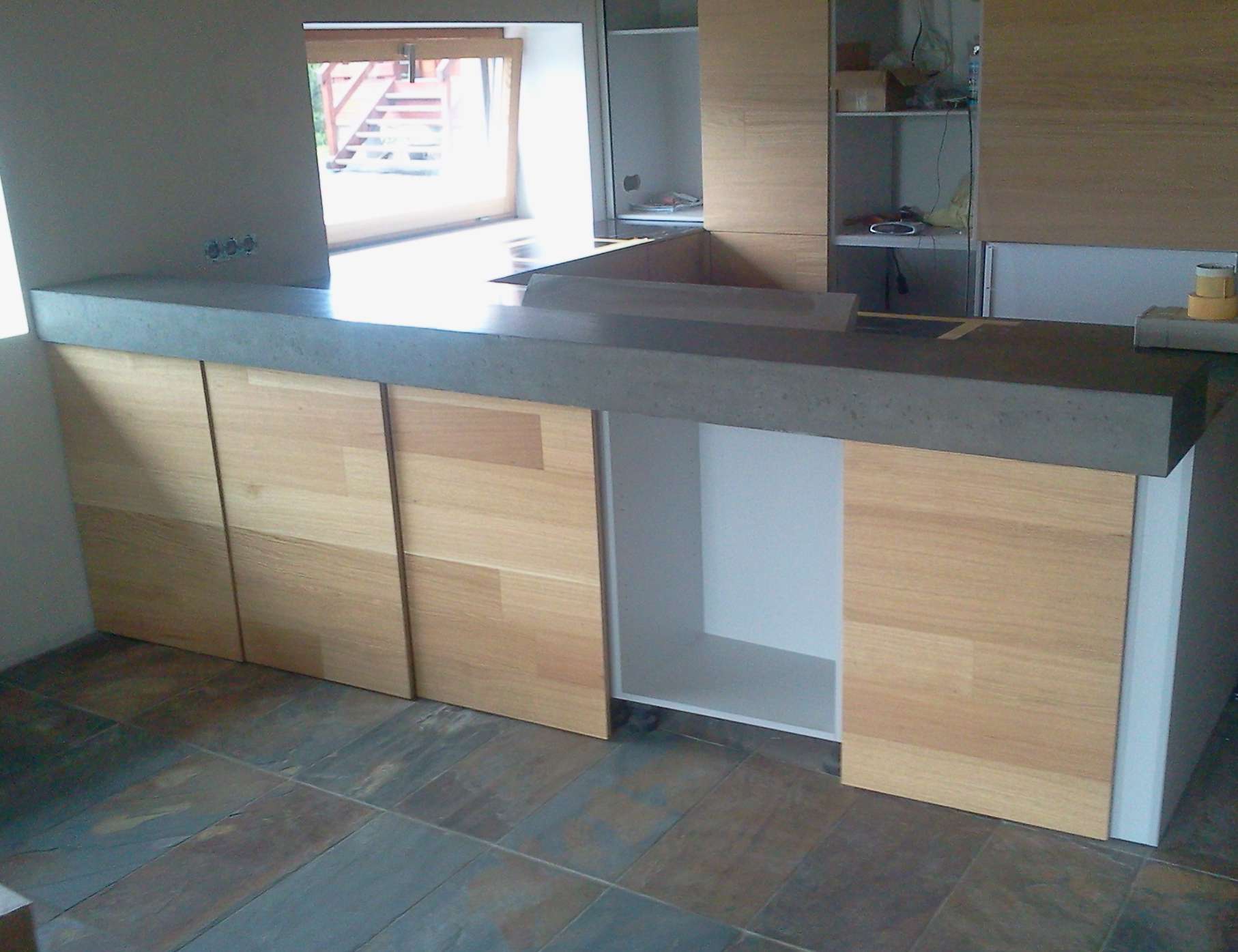 Modern kitchen has space for bar that may divide living premises from kitchen. In this case, we have created a really hard bar segment that is full of concrete in cross-section. On one end, there’s a system of threaded bushings and rods, anchored to the wall. Very good execution of modern bar in kitchen.