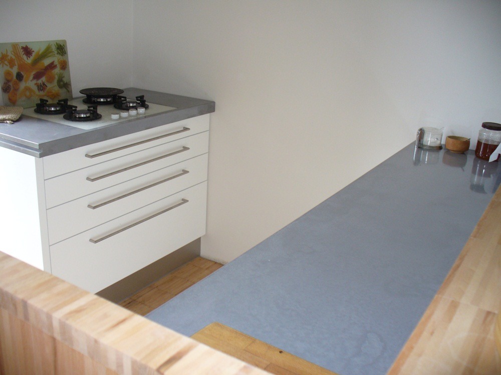 For concrete kitchen, monolithic sink and concrete grey colour fit the best. Thanks to investor, in this kitchen, we were able to do everything we needed. This "Soft Silver" colour is one of the most sold colours. We’re glad that we can decorate interiors over the entire Czech and Slovak Republic.