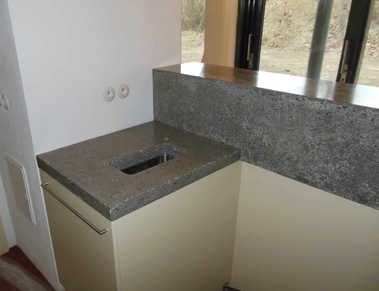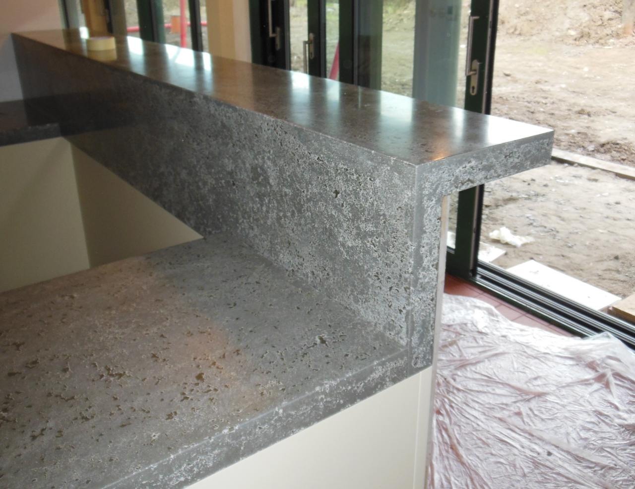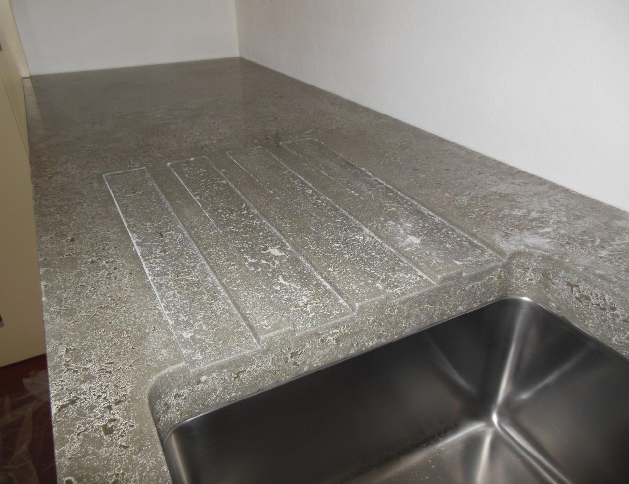 This execution has certain basic colours. Such effect is achieved by the preparation of poriferous concrete body of boards. This unit is then puttied by different contrast putties. This method helps us to achieve some kind of marbling while the properties of concrete surface will remain the same.