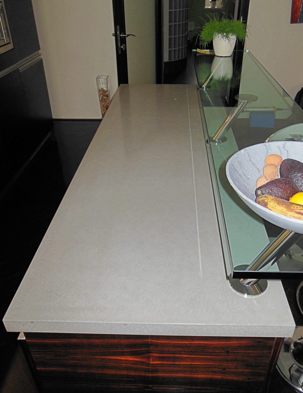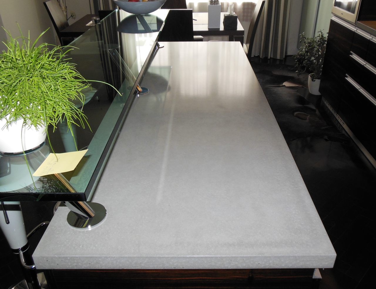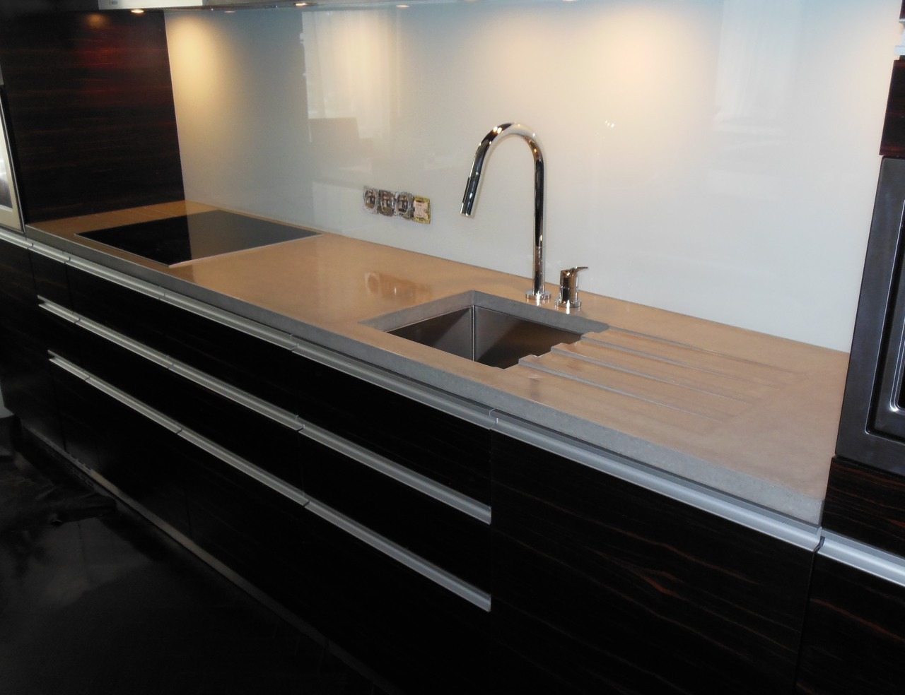 Combination of materials like concrete, stainless steel and glass is fascinating. We helped to improve this interior with Ordos design from Brno. Beautiful concrete unit with integrated drainage. Grey colour and neutrality of concrete provides elegance to each interior.