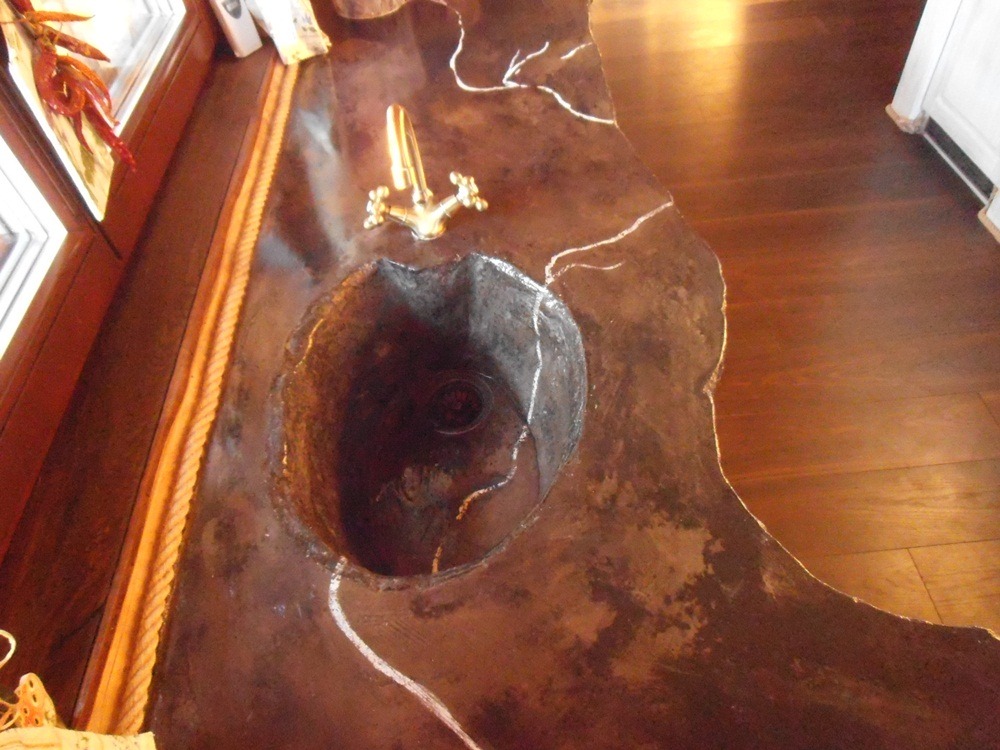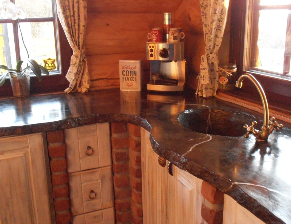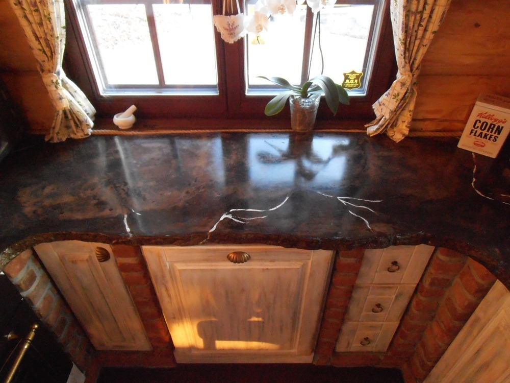 This type of concrete work board was made directly in customer’s kitchen. He was present at the final layer of colours and finished the desk with us in person. Special type of colours is put on a wet surface of concrete and after cement hydration, it will connect to the board tightly. The entire unit is then completed by the use our special hybrid impregnation. Board adjusted in this way is a true jewel for kitchens.