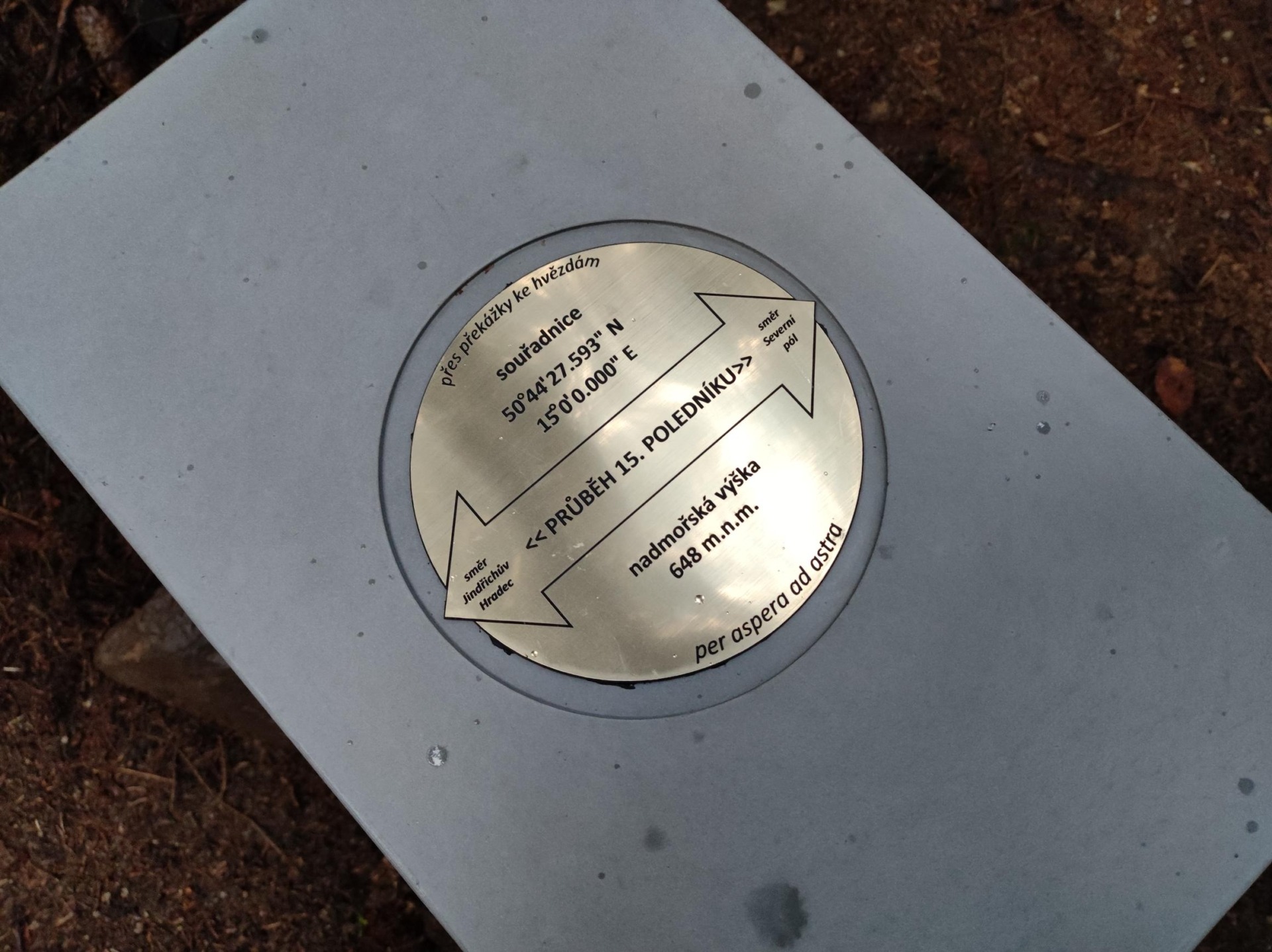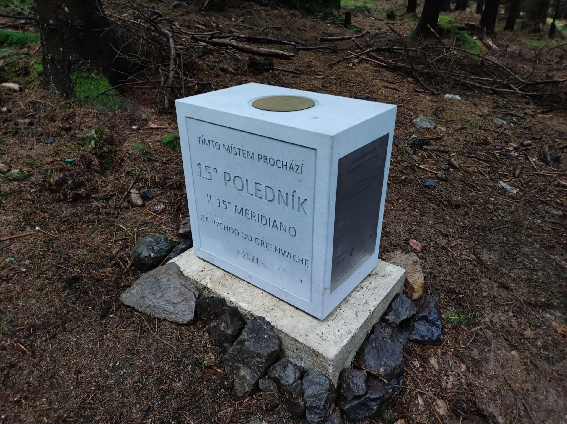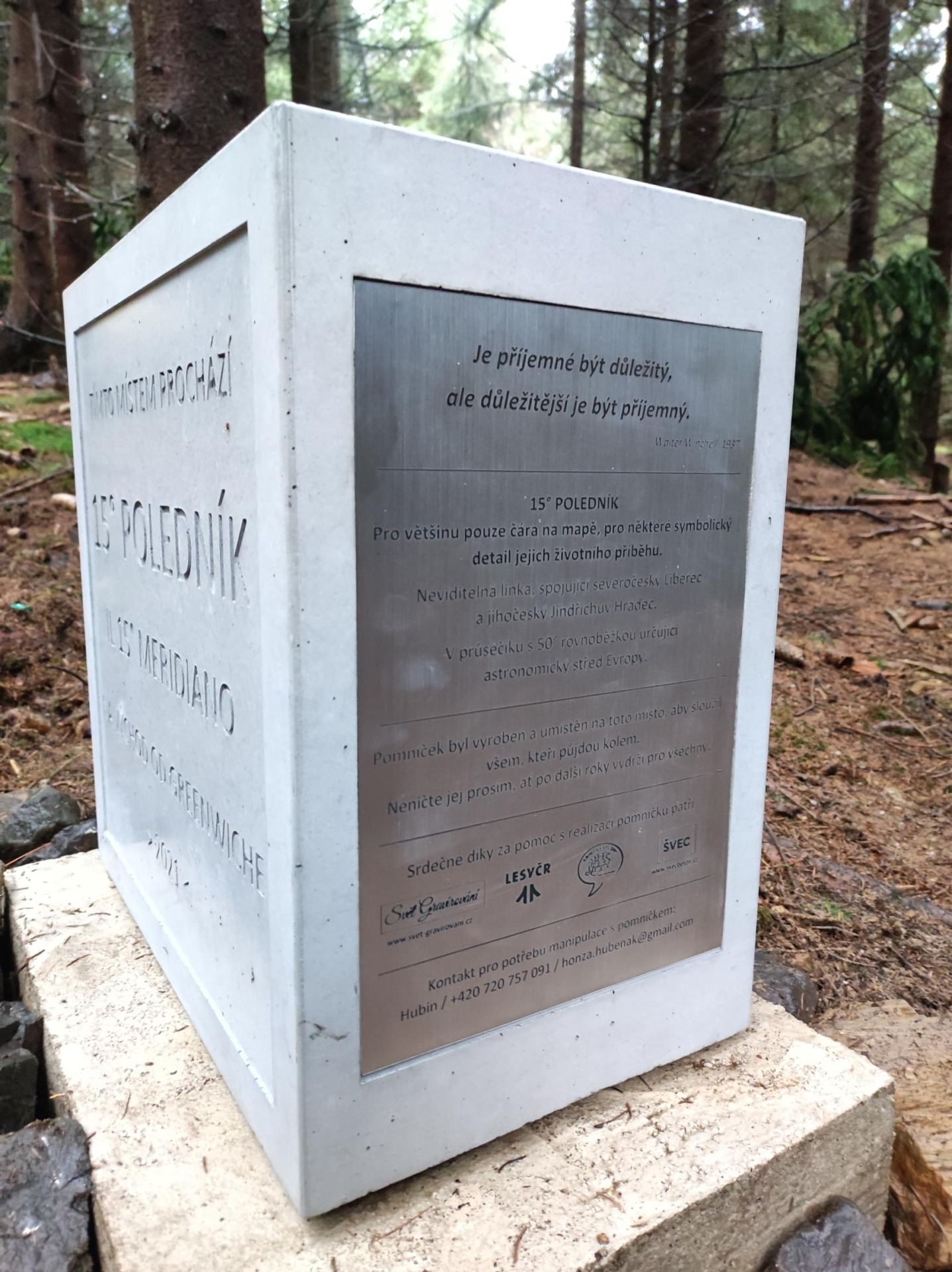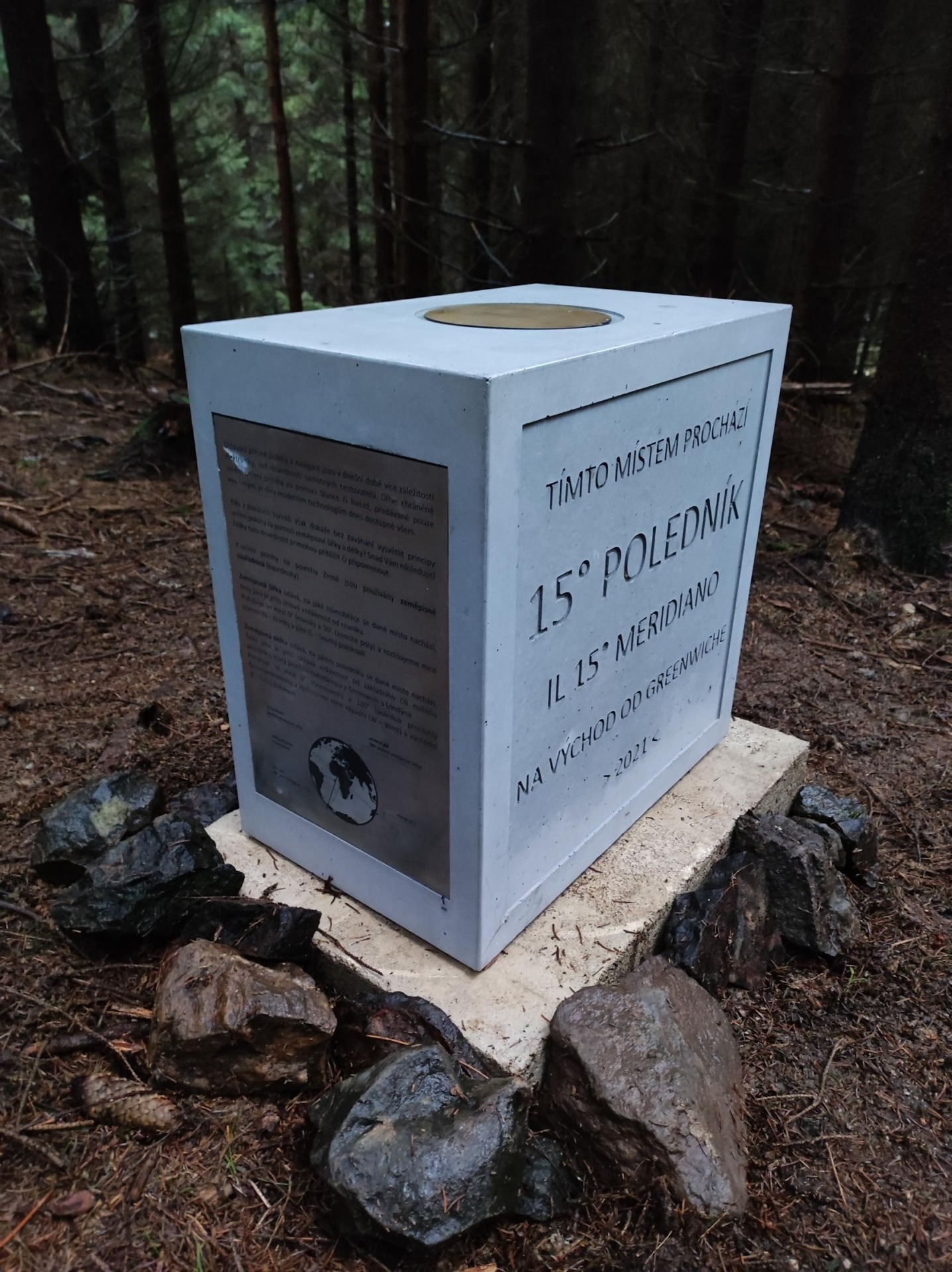 Tímto místem prochází 15°poledník IL 15°meridiano na východ od Greenwiche. Astronomický střed Evropy. Naše republika opravdu leží ve středu Evropy. Abychom na to mohli být hrdí, vybetonovali jsme milník, který můžete potkat na cestě z Liberce kousek od Ještědu.
