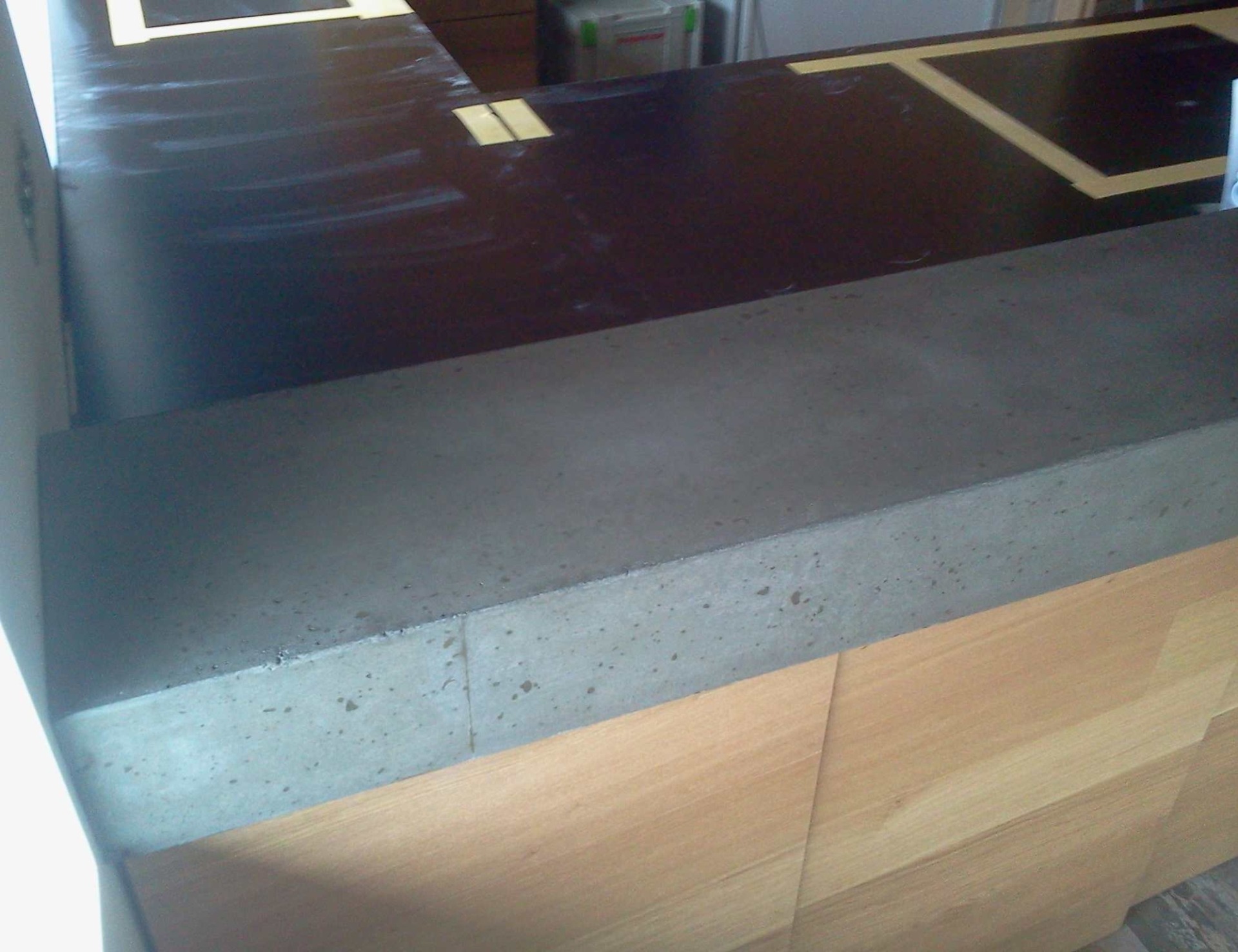 Moderní kuchyně má prostor pro bar, který může oddělovat obývací prostor od kuchyňského. V tomto případě jsme vyrobili pravdu těžký segment baru, který je v řezu plný betonu. Na jednom konci se systémem závitových pouzder a tyčí ukotvil do stěny. Velmi povedená realizace moderního baru v kuchyni.
