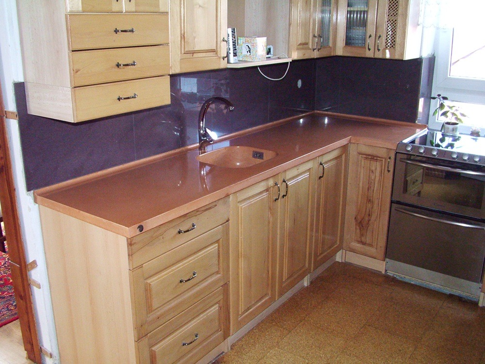 Pracovní deska z betonu lze probarvit na jakoukoliv barvu. Nejvíce jí však sluší betonová šedá.