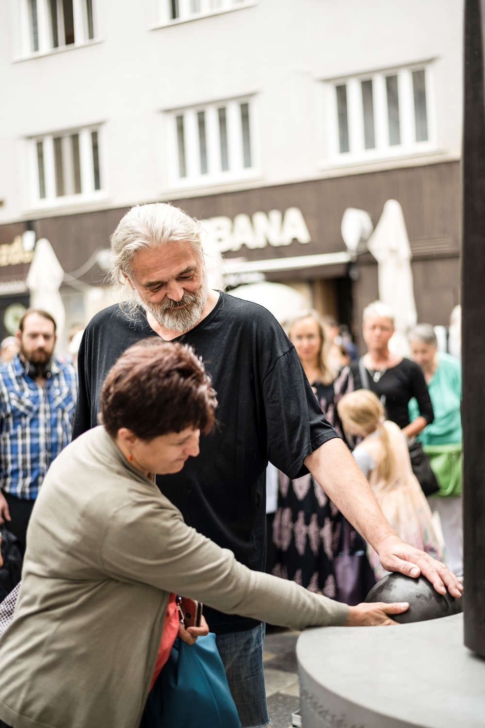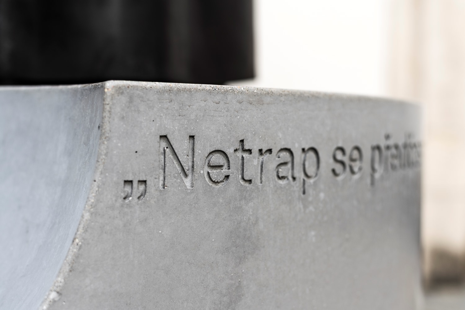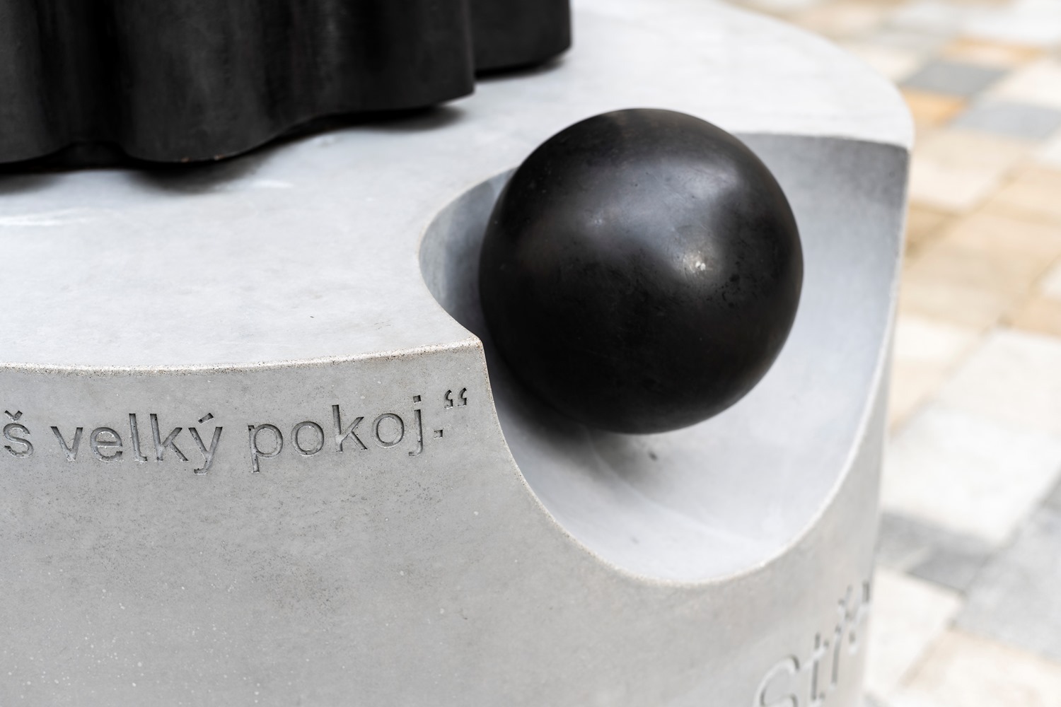 Podstavec pro sochu pátera Martina Středy v sobě skrývá nosnou konstrukci. Podstavec z našeho leštěného betonu je dutý s tloušťkou stěny 70mm. Nejtěžší část bylo detailně zpracované písmo na obvodu celého podstavce. Formu pro písmo jsme vyráběli na vodním paprsku v Brně. Součástí dodávky byla i naše instalace v centru Brna.