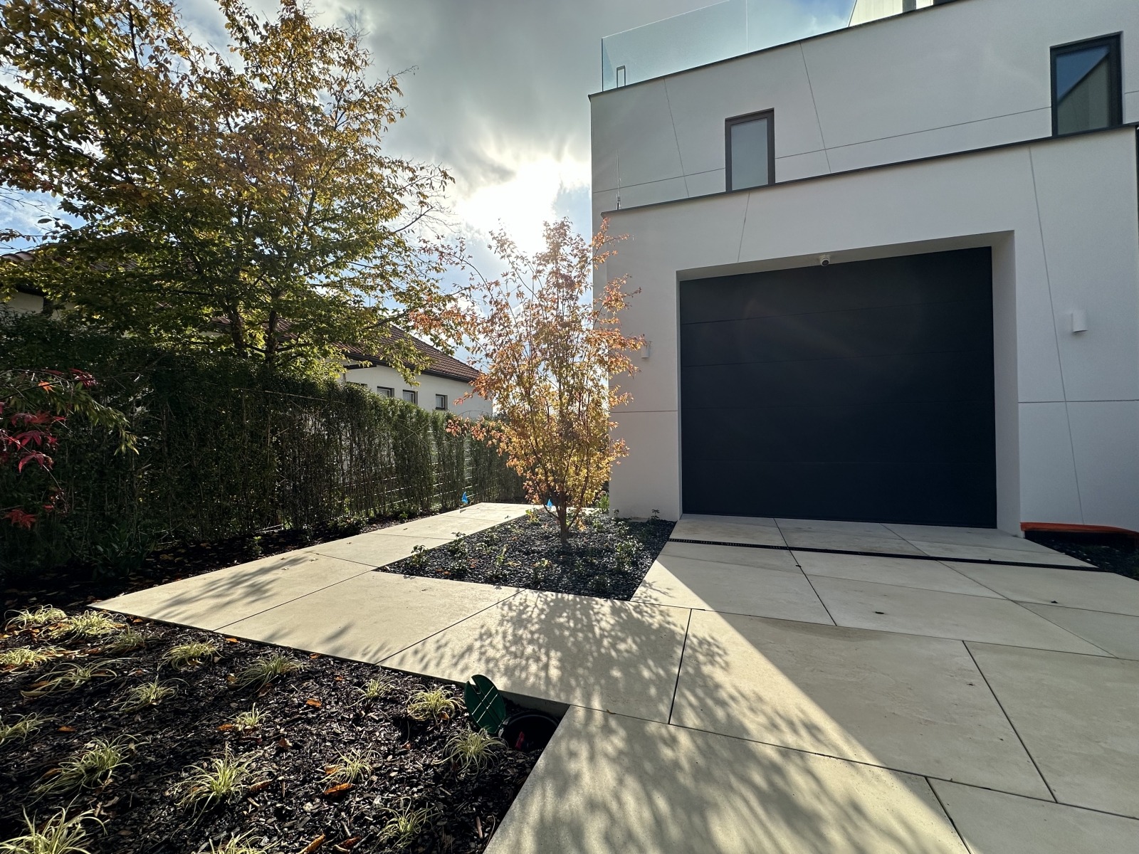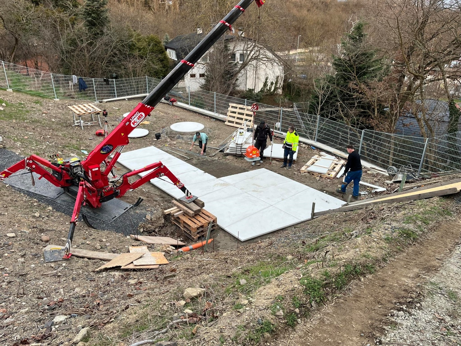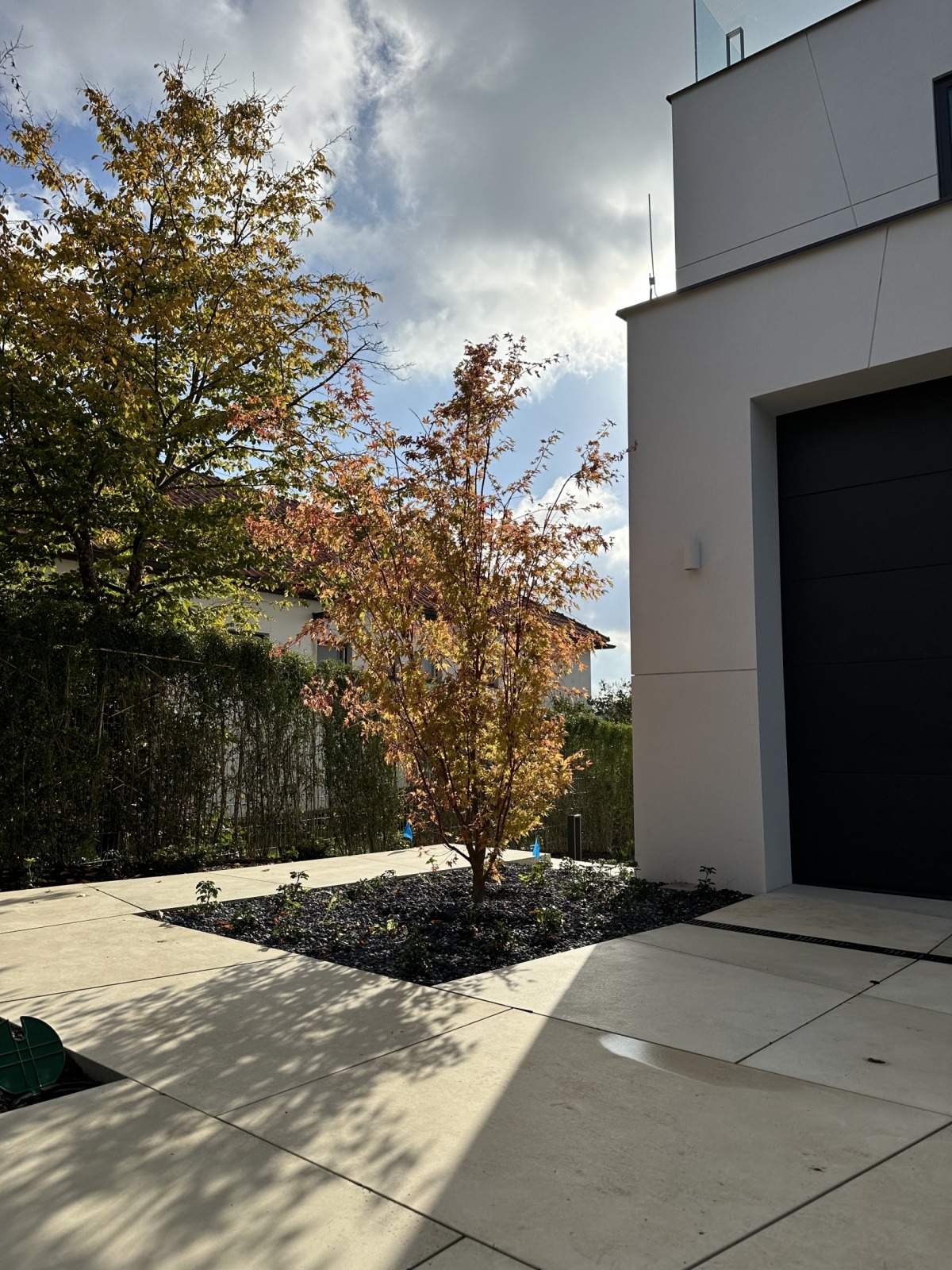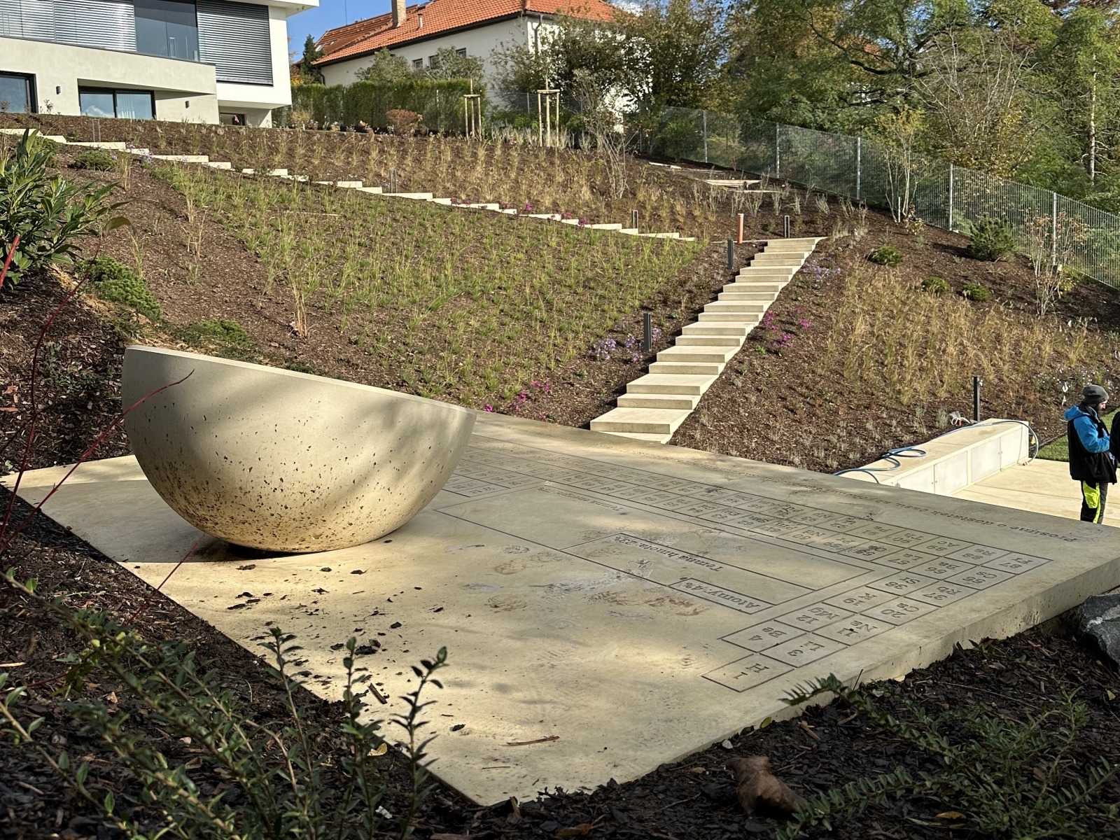 Velkoformátové dlaždice z bílého betonu pro vjezdy a vchody. Velké dlaždice pro jezdecké schody. Graficky beton a největší dlaždice, kterou jsme vyráběli. To vše je v tomto projektu. Krásná soukromá zahrada v Praze. Nás tento projekt naučil logistice, manipulaci a instalaci jeřábní technikou na místě.